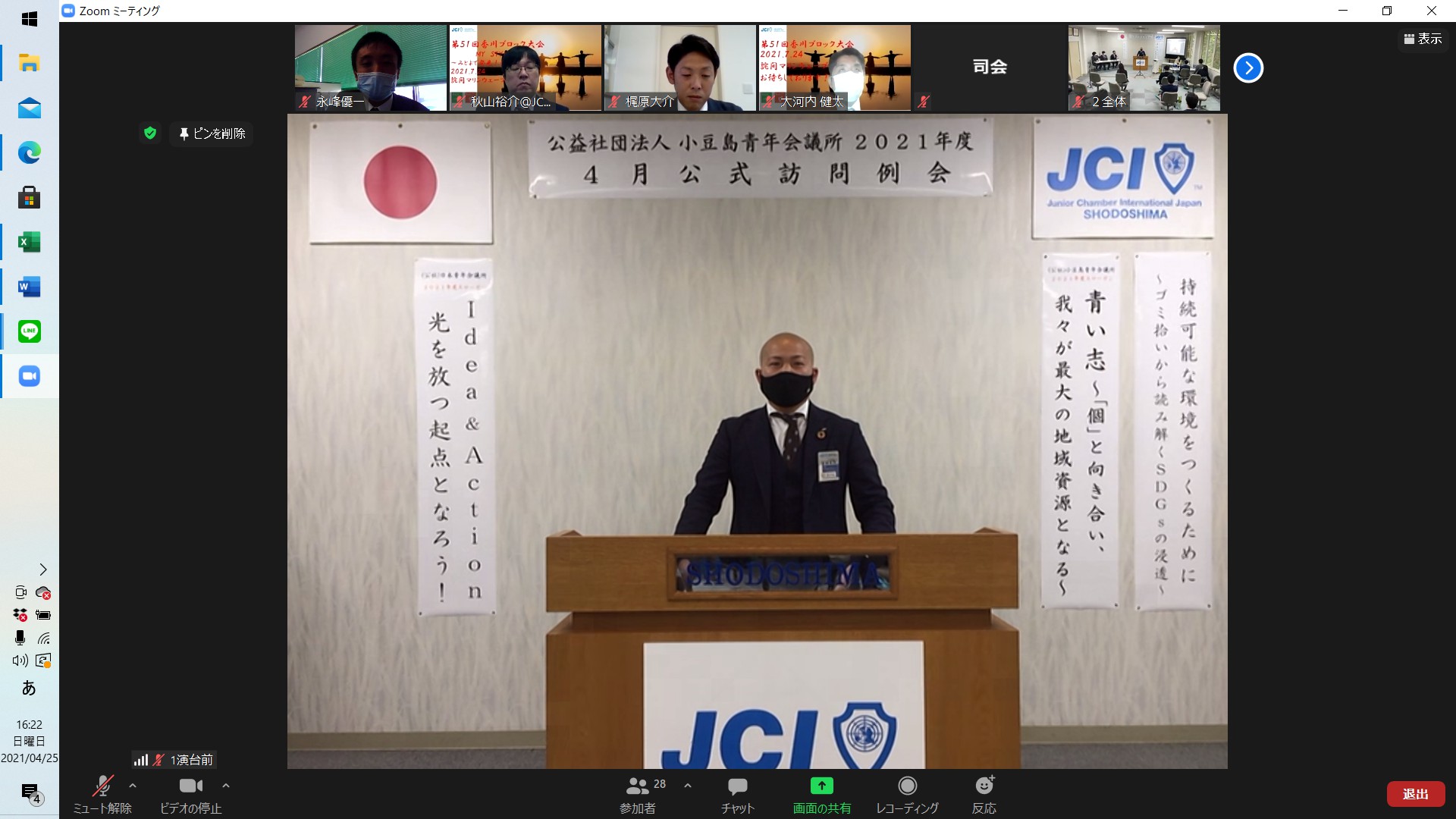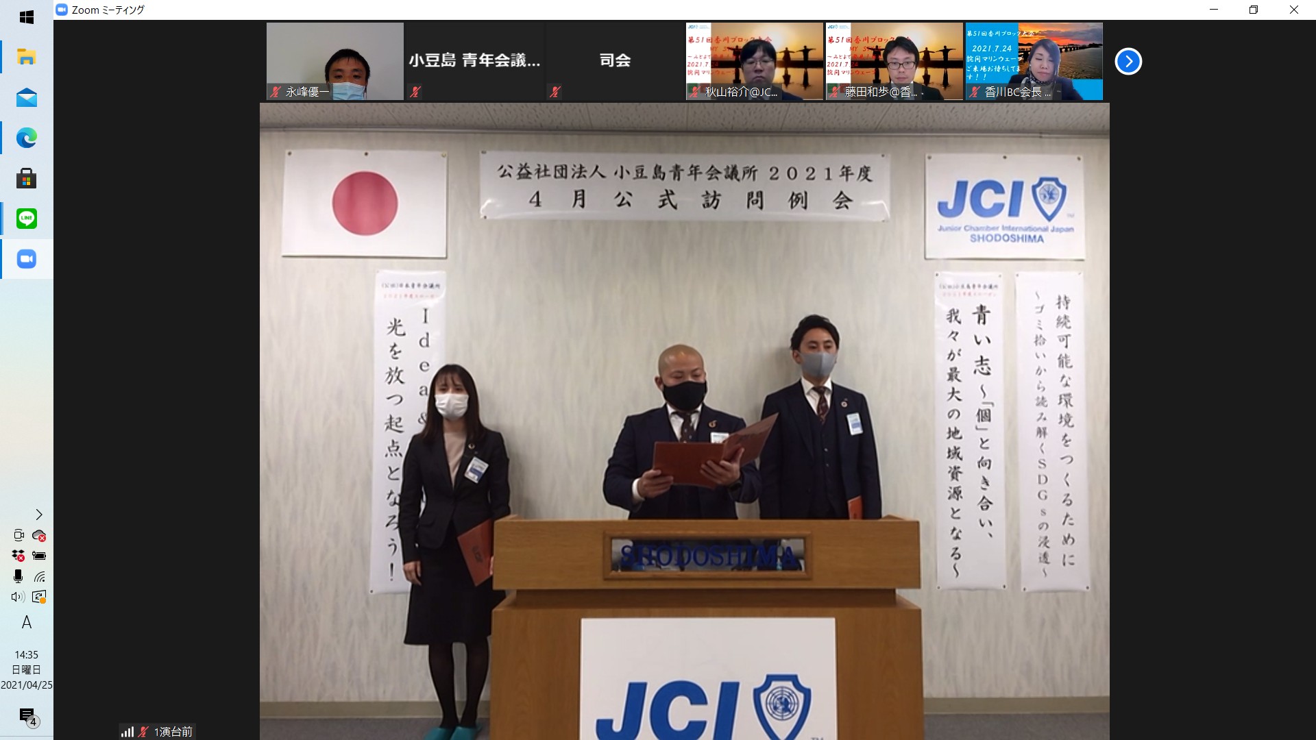 新型コロナウイルス感染症対策のため、小豆島JCメンバー以外は、ZOOM、Youtubeライブでの参加となりました。