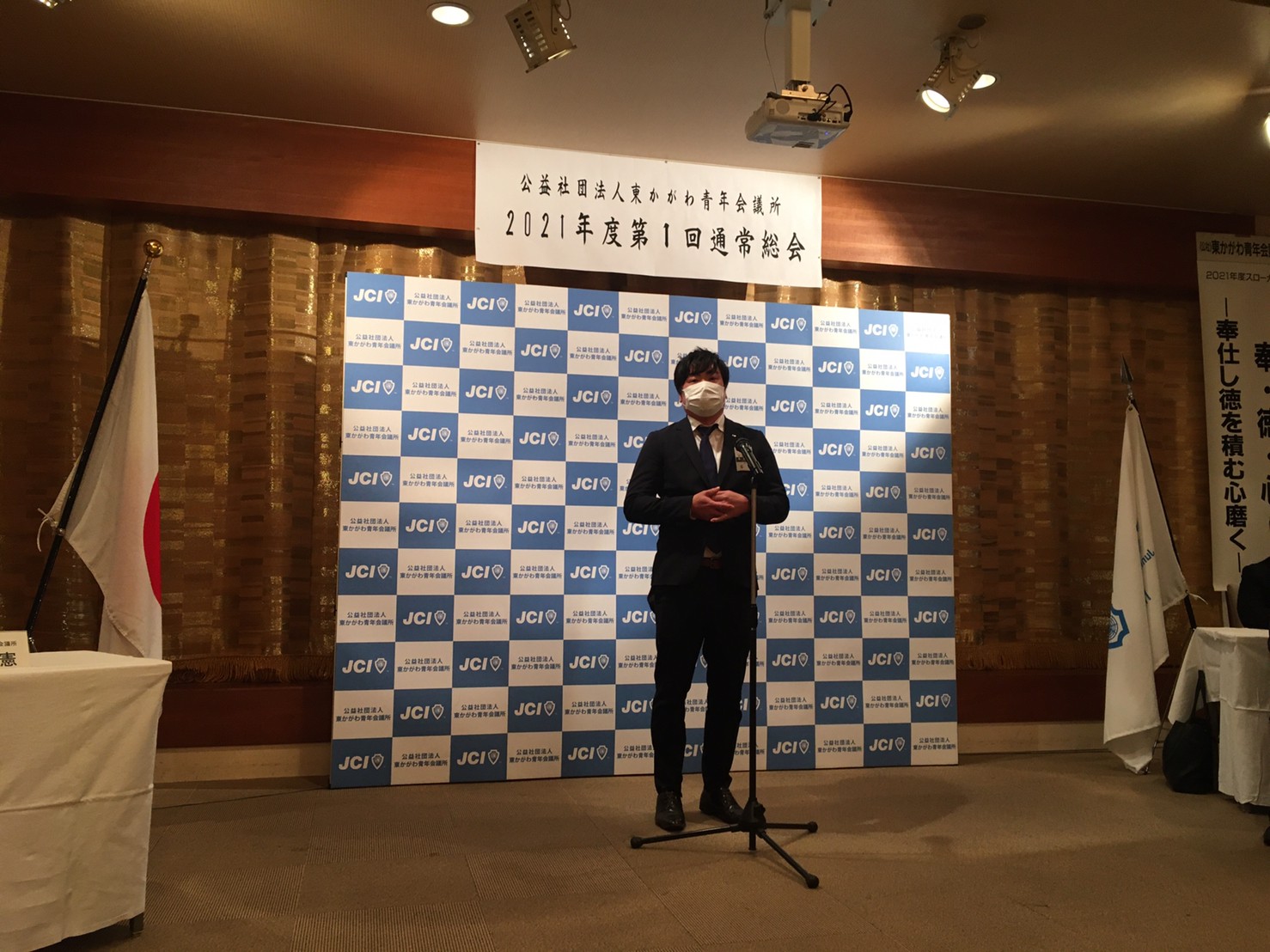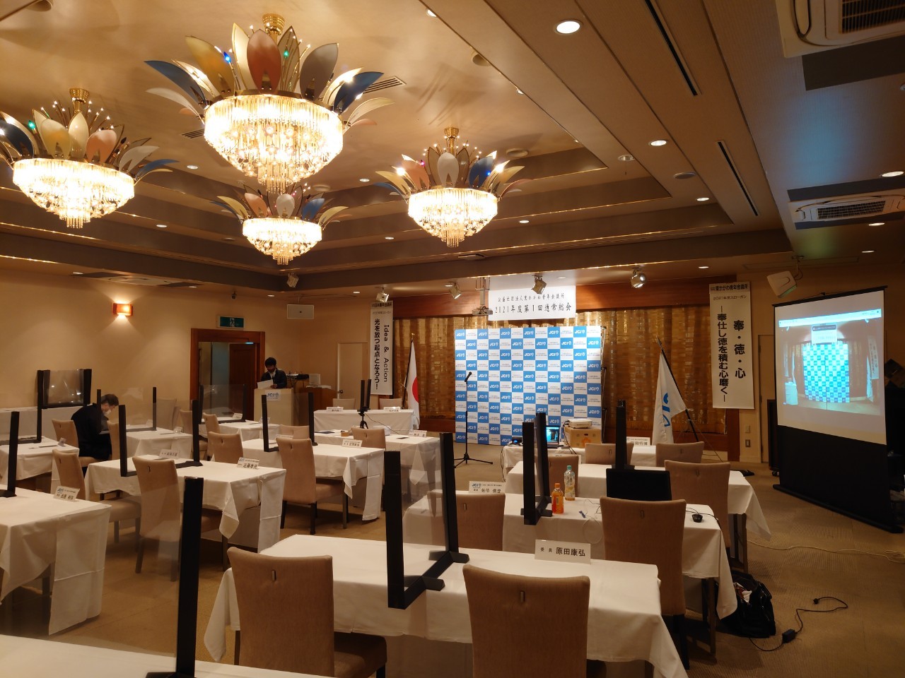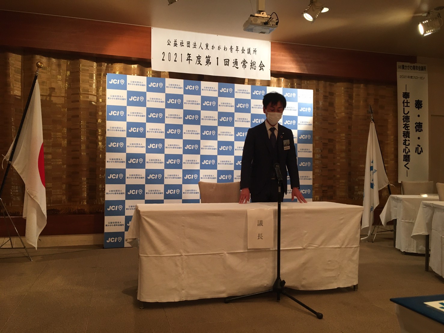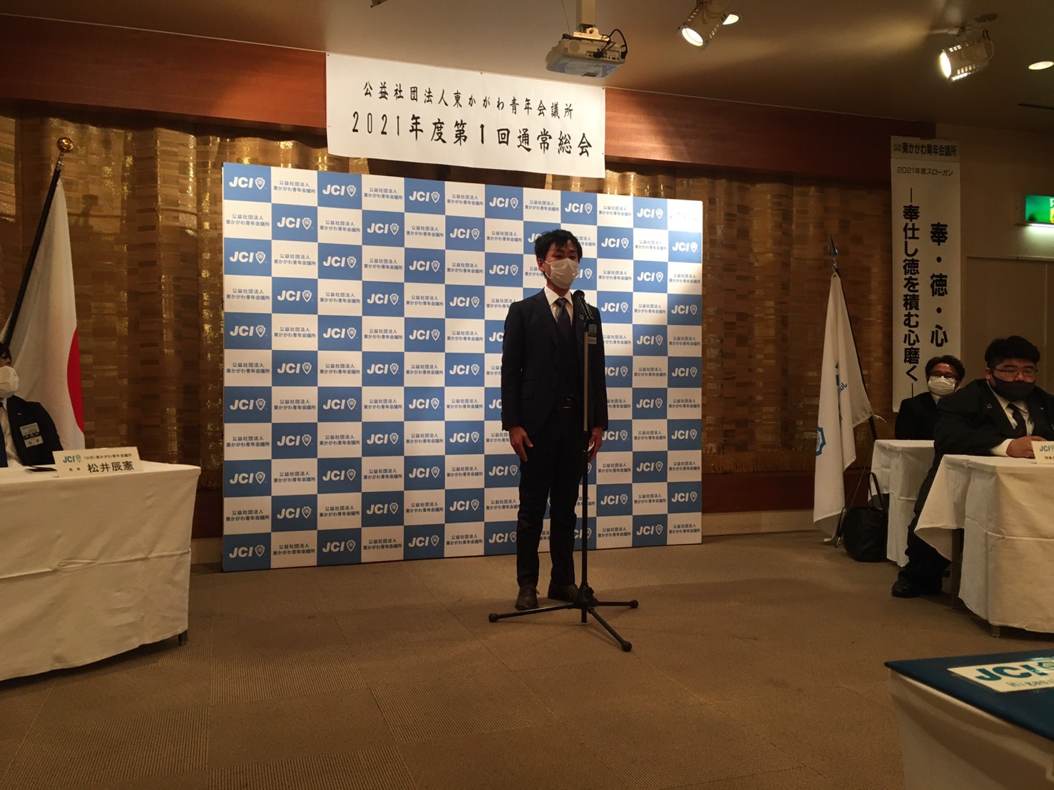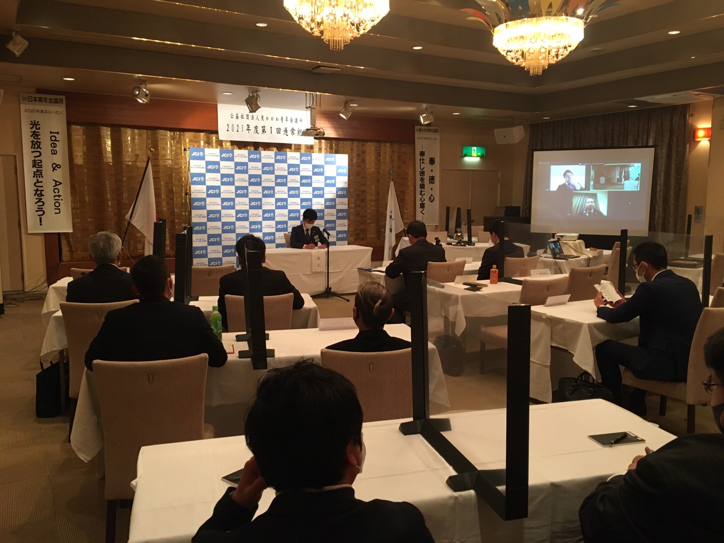 2021年度理事長 日下 奉哉(くさか ともや)、直前理事長 長町 雅人からの挨拶から始まり、2020年度の事業報告、決算報告のほか、2021年度の理事長所信、スローガン、事業計画などが全会一致で承認され、2020年度の締めくくりと、2021年度のスタートが切れた総会となりました。
