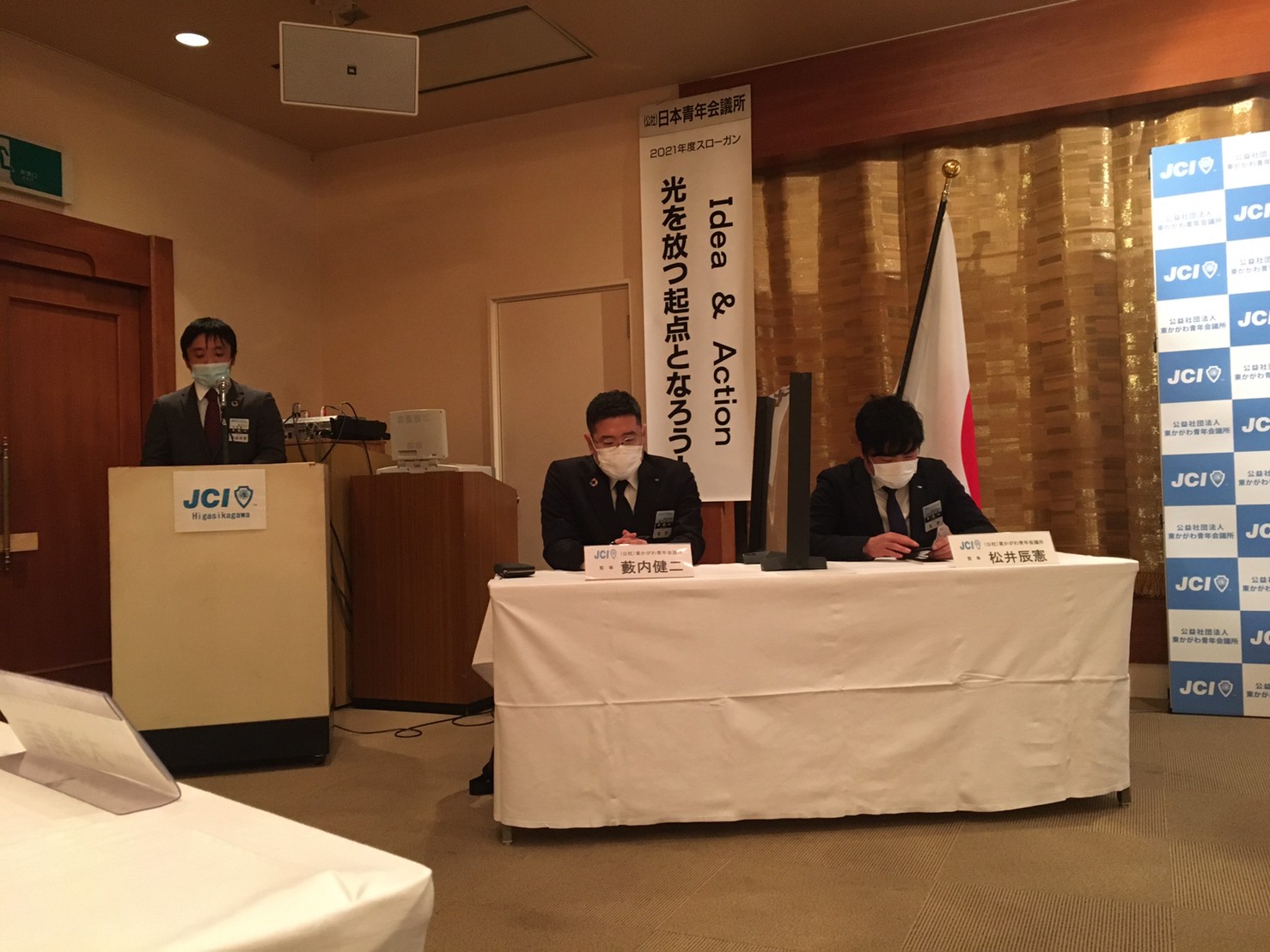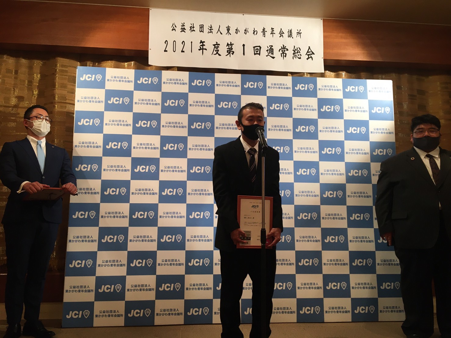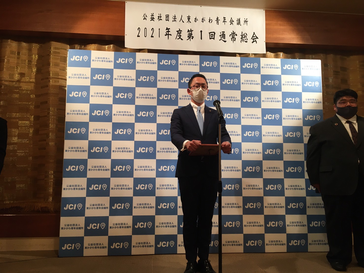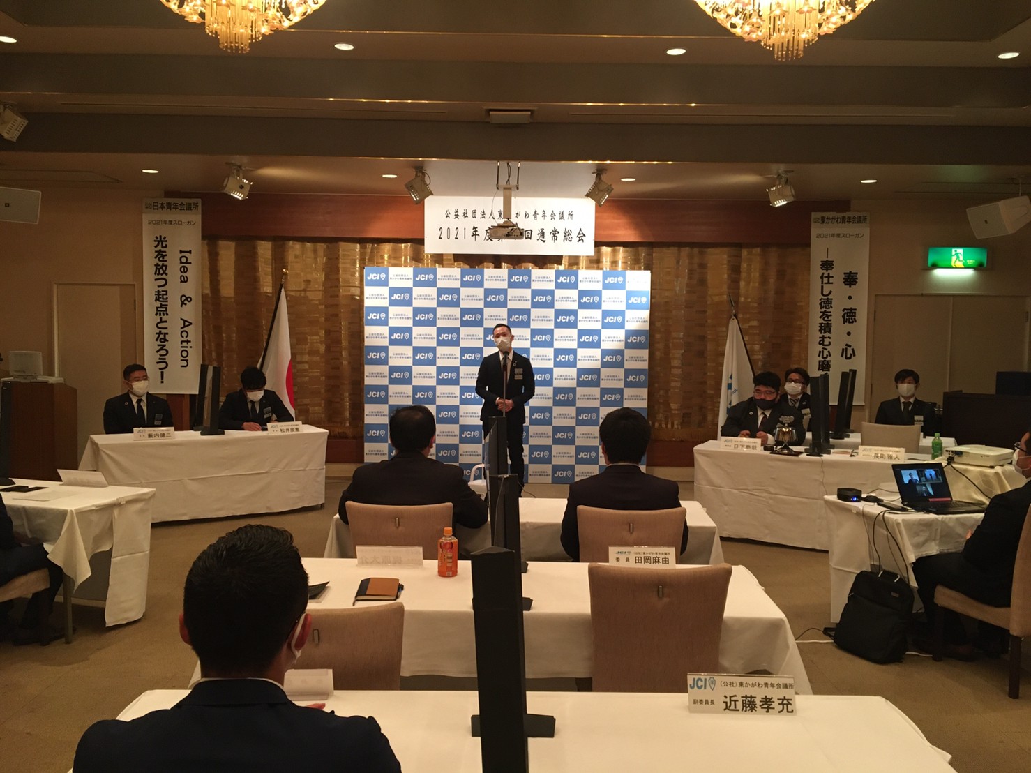 2021年度理事長 日下 奉哉(くさか ともや)、直前理事長 長町 雅人からの挨拶から始まり、2020年度の事業報告、決算報告のほか、2021年度の理事長所信、スローガン、事業計画などが全会一致で承認され、2020年度の締めくくりと、2021年度のスタートが切れた総会となりました。