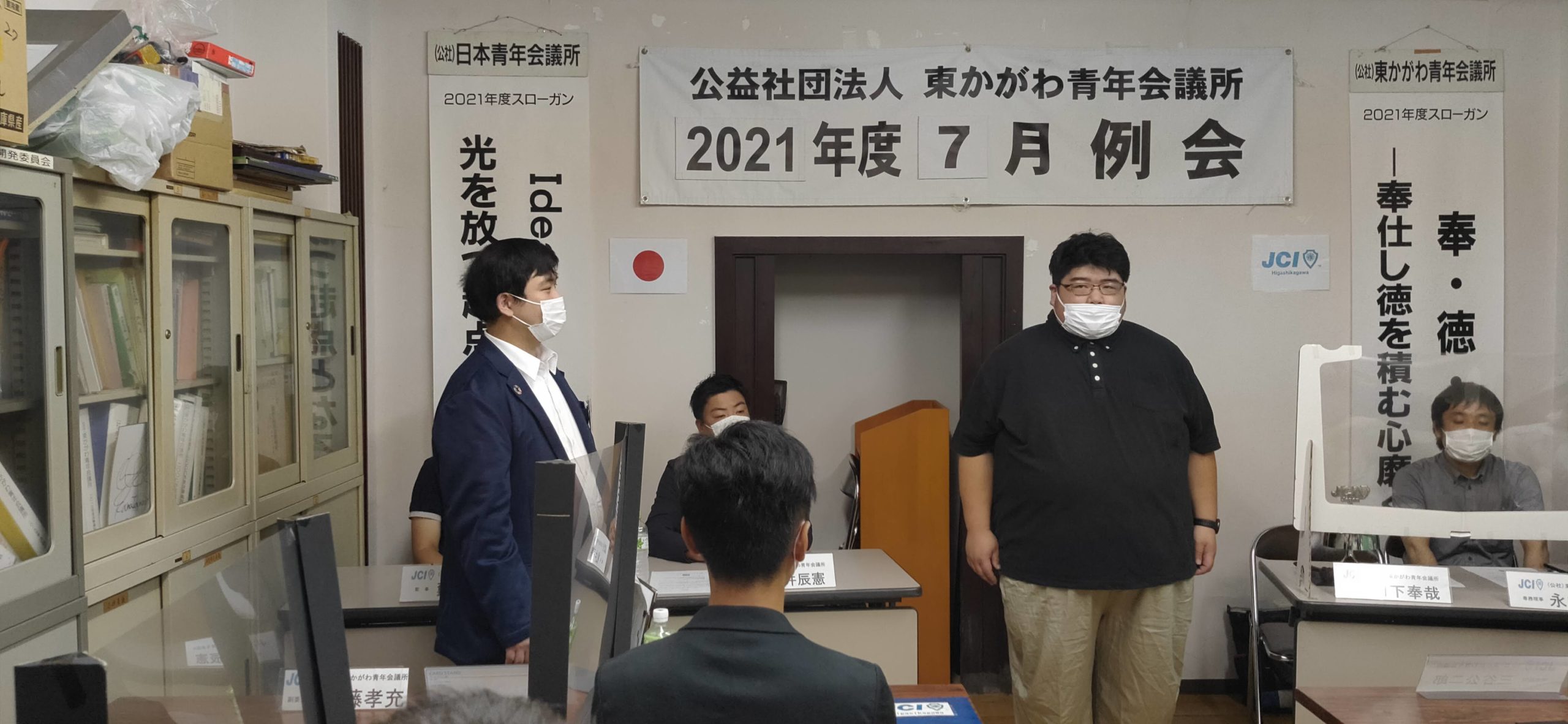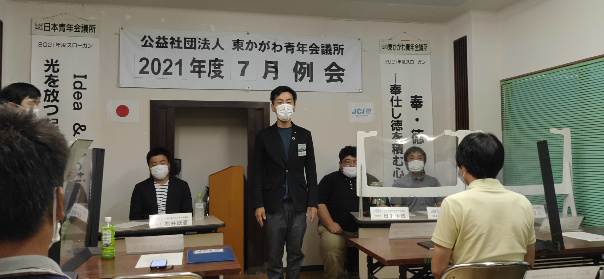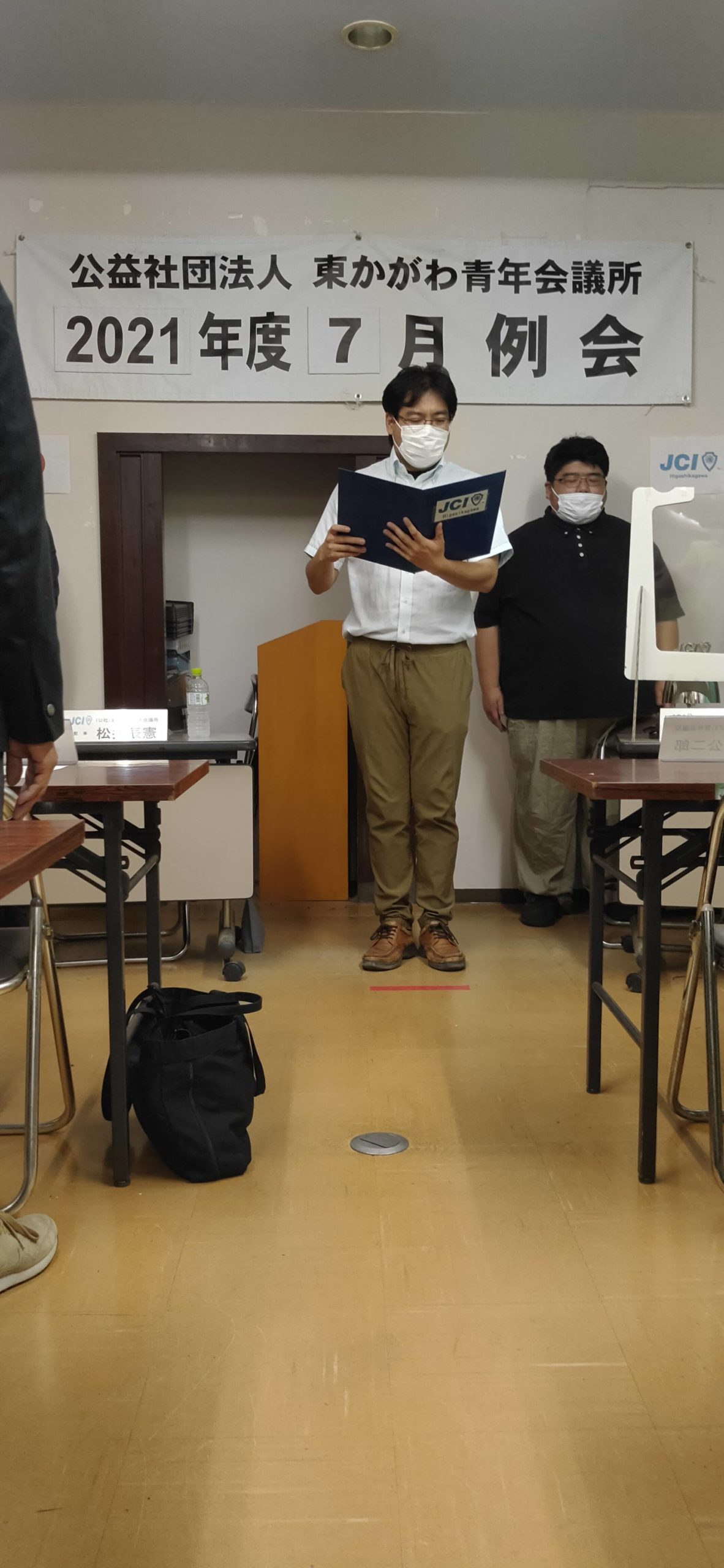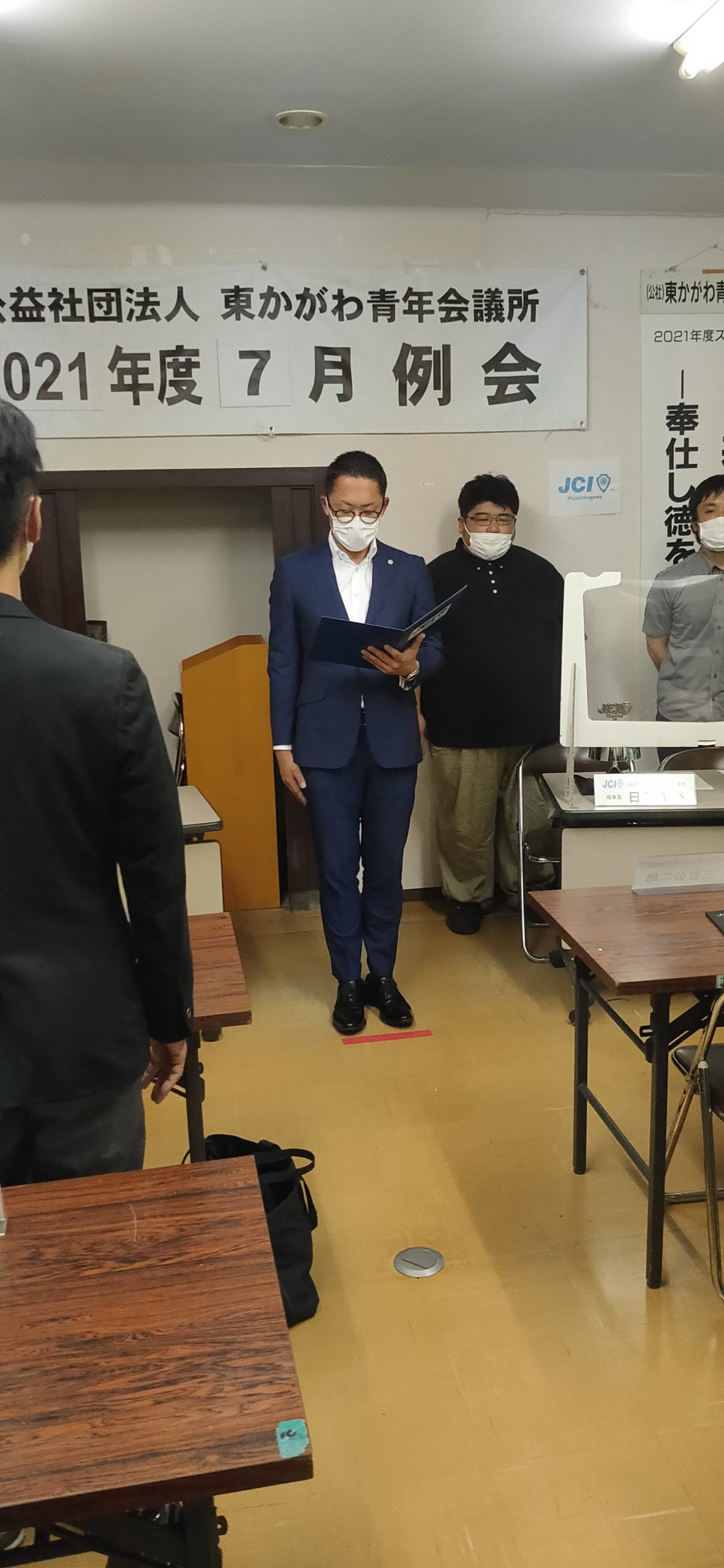例会では冒頭に、ミッション・ビジョン唱和や、宣言文並びに綱領唱和を行います。今回は2021年度に新しくメンバーの一員となった桑島君、笹浦君の張りのある唱和のもとに開始されました。